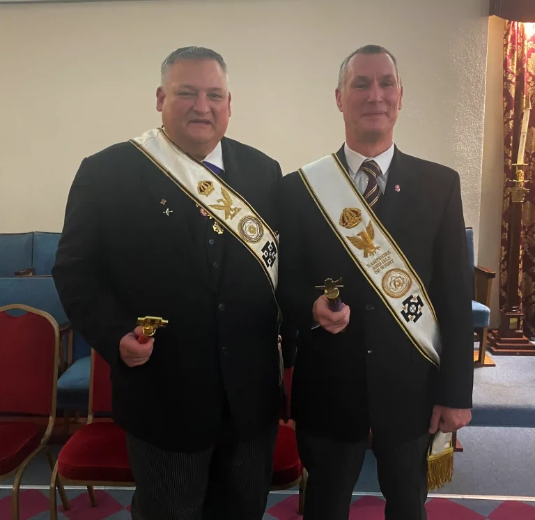 On Saturday 6th December, having proceeding individually, our Intendant General, R. Ill.Kt. Steven Groeger and the Deputy Intendant General, Ill. Kt. Mark Denton, met at the Masonic Hall at Marychurch, an interesting arched post war building, well hidden , as it is set back from the road.